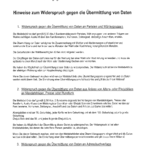 1. Widerspruch gegen die Übermittlung von Daten an Parteien und Wählergruppen