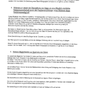 4. Widerspruch gegen die Übermittlung von Daten an eine öffentlich-rechtliche Religionsgesellschaft durch den Familienangehörigen eines Mitglieds dieser Religionsgesellschaft