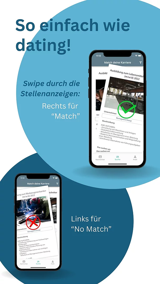 Findest Du das Unternehmen spannend und das Unternehmen Dich, kommt es zum „Match“ – präsentierst Du dich gut im Chat, hast Du gute Chancen auf ein Vorstellungsgespräch und die Ausbildungsstelle Deiner Träume.