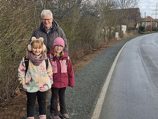In Abstimmung mit dem Landkreis Lichtenfels, insbesondere mit dem Leiter des Kreisbauhofs Heiko Tremel konnte der gemeindliche Bauhof einen "kleinen" Gehweg entlang der Kreisstraße in Reuth herstellen. Damit kann die Verkehrssicherheit - insbesondere für den Schulweg zur Baushaltestelle in Reuth - etwas verbessert werden. Über die Maßnahme freuen sich zusammen mit dem Bürgermeister die beiden Grundschülerinnen Annika und Emiliy Mahr.