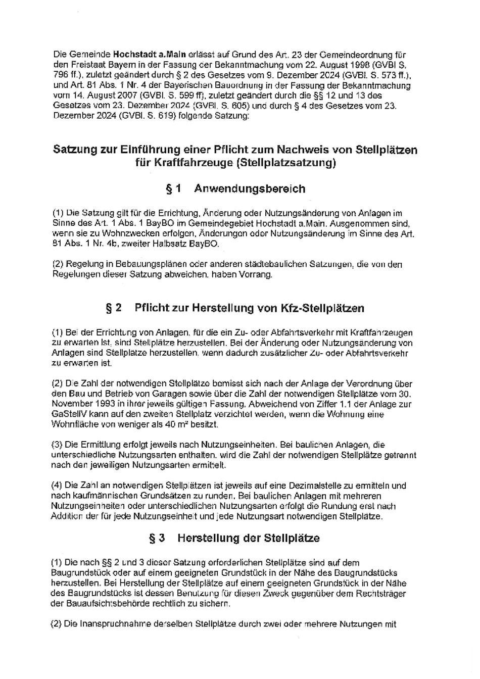Mit dem 30.10.2025 trat die neue Stellplatzsatzung der Gemeinde Hochstadt a.Main in Kraft.