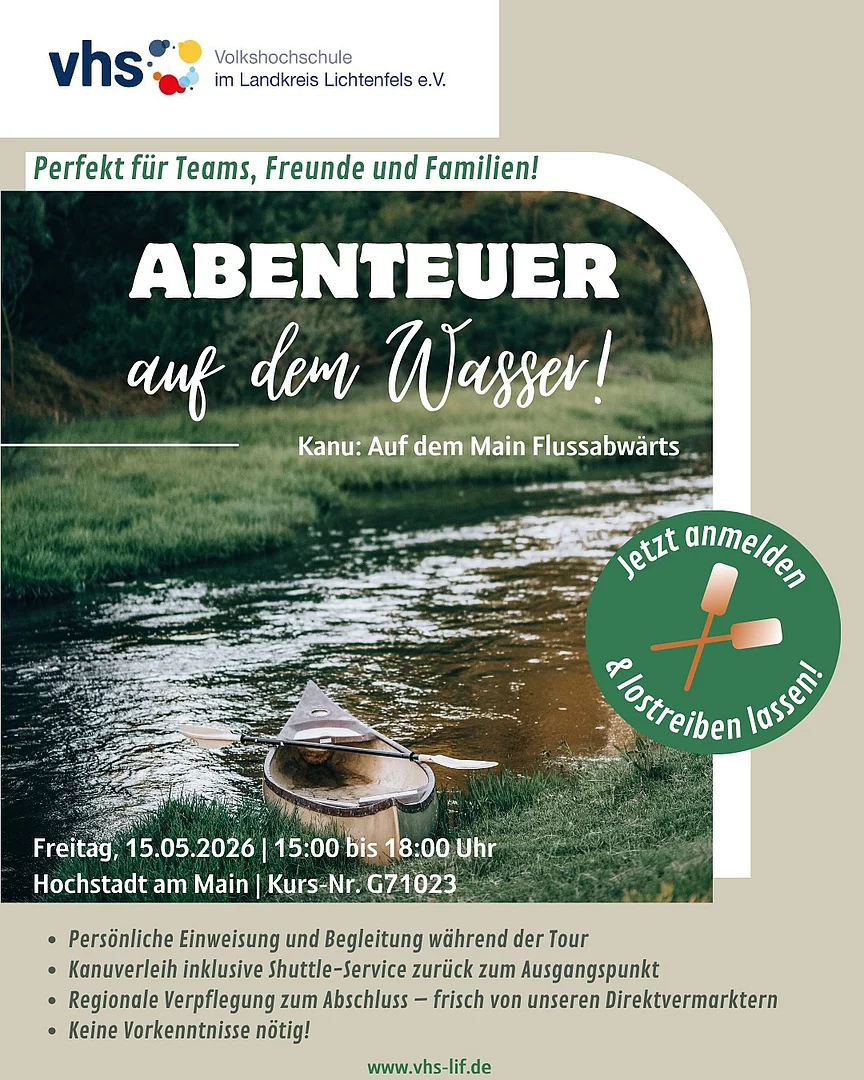 Genauere Informationen auf der Internetseite der Volkshochschule Lichtenfels.
